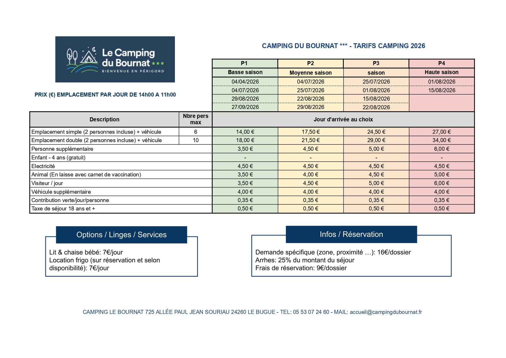 Notre volonté : rester un camping abordable avec des prestations adaptées aux attentes et envies des différents clients, campeurs de longue date ou nouveau dans l’univers du camping. Et avec, des tarifs attractifs.