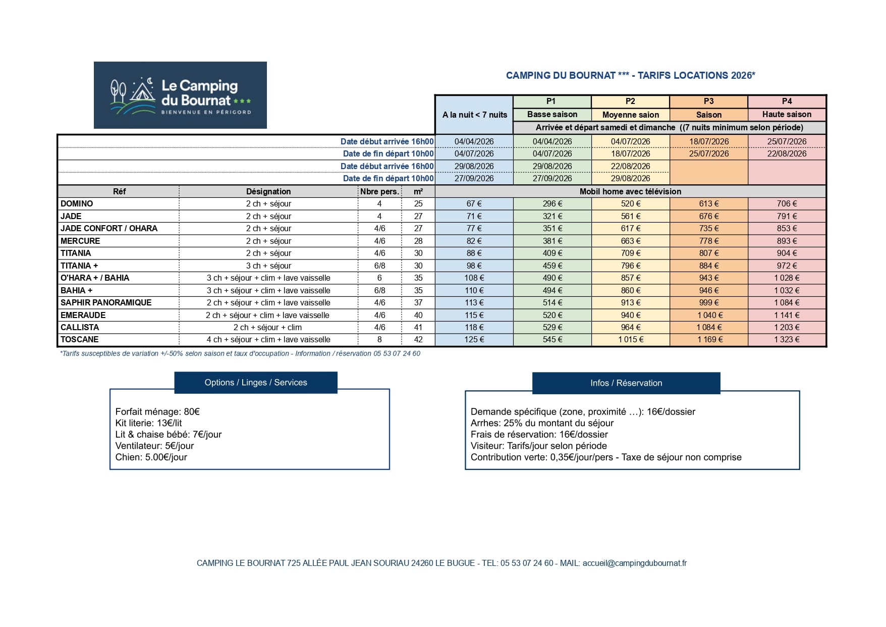 Le Camping*** du Bournat propose à la location 51 mobil-homes et 109 emplacements nus aux meilleurs tarifs.
